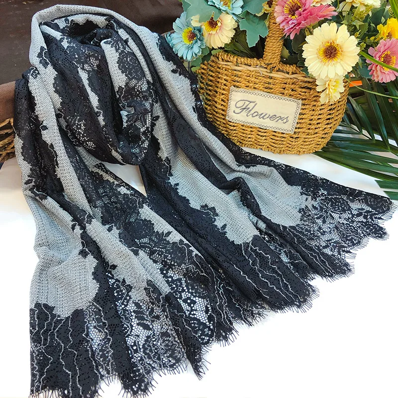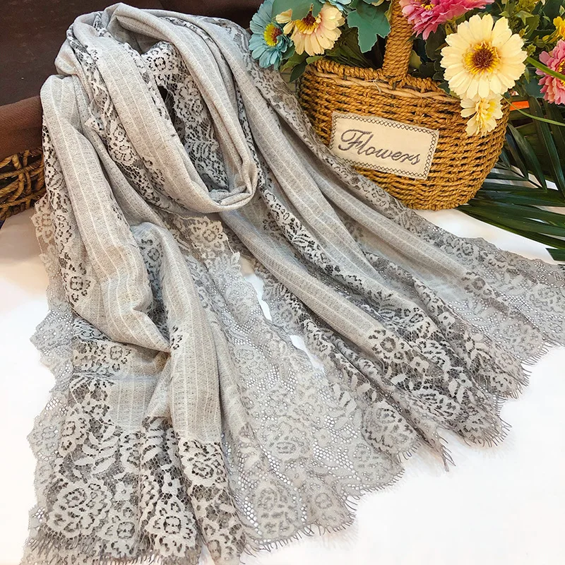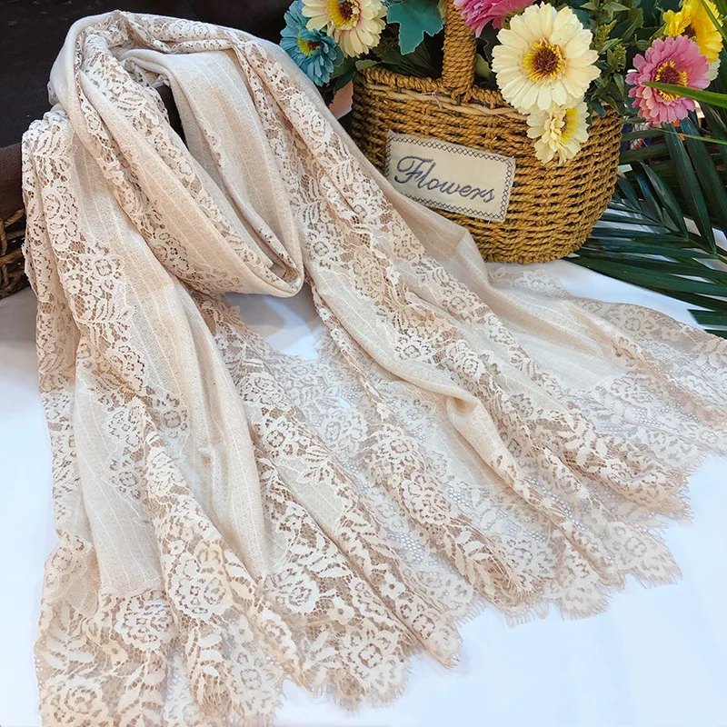 Classic wool silk mixed lace shawl in size 45 cm * 175cm
