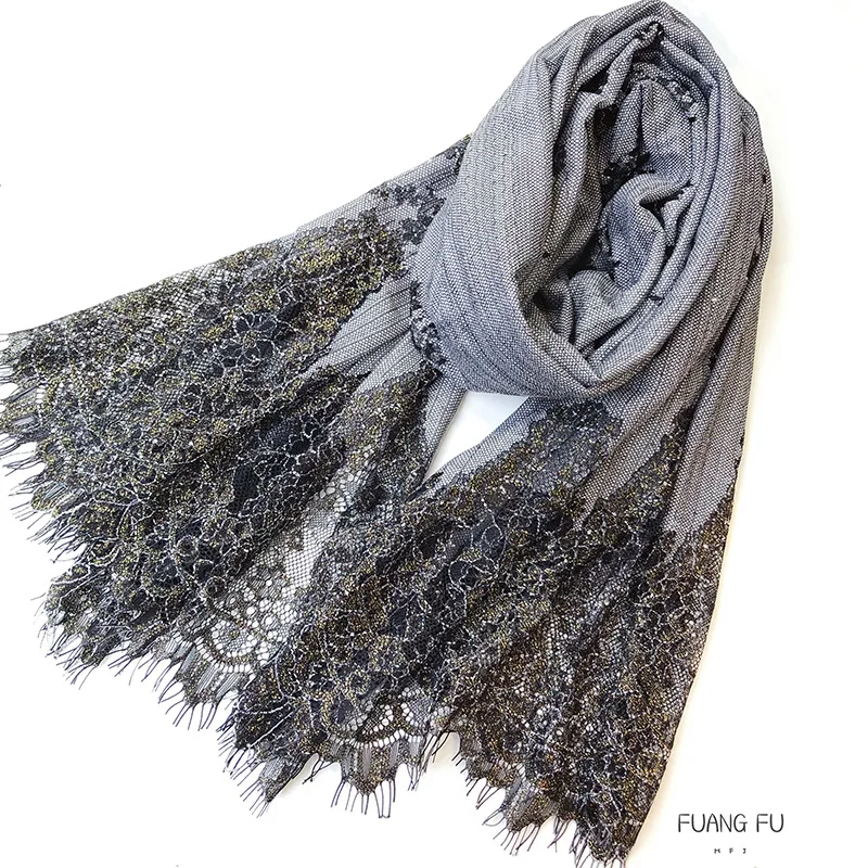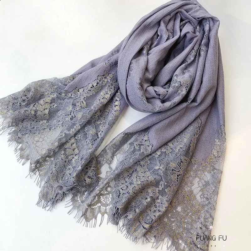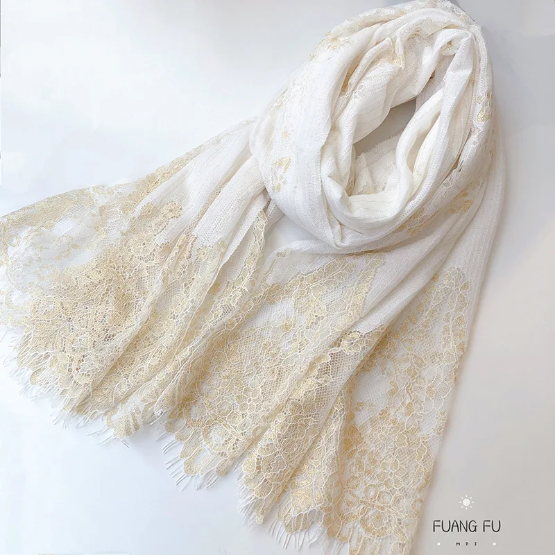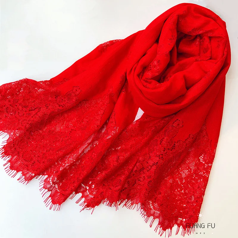 Classic wool silk mixed lace shawl in size 45 cm * 175cm