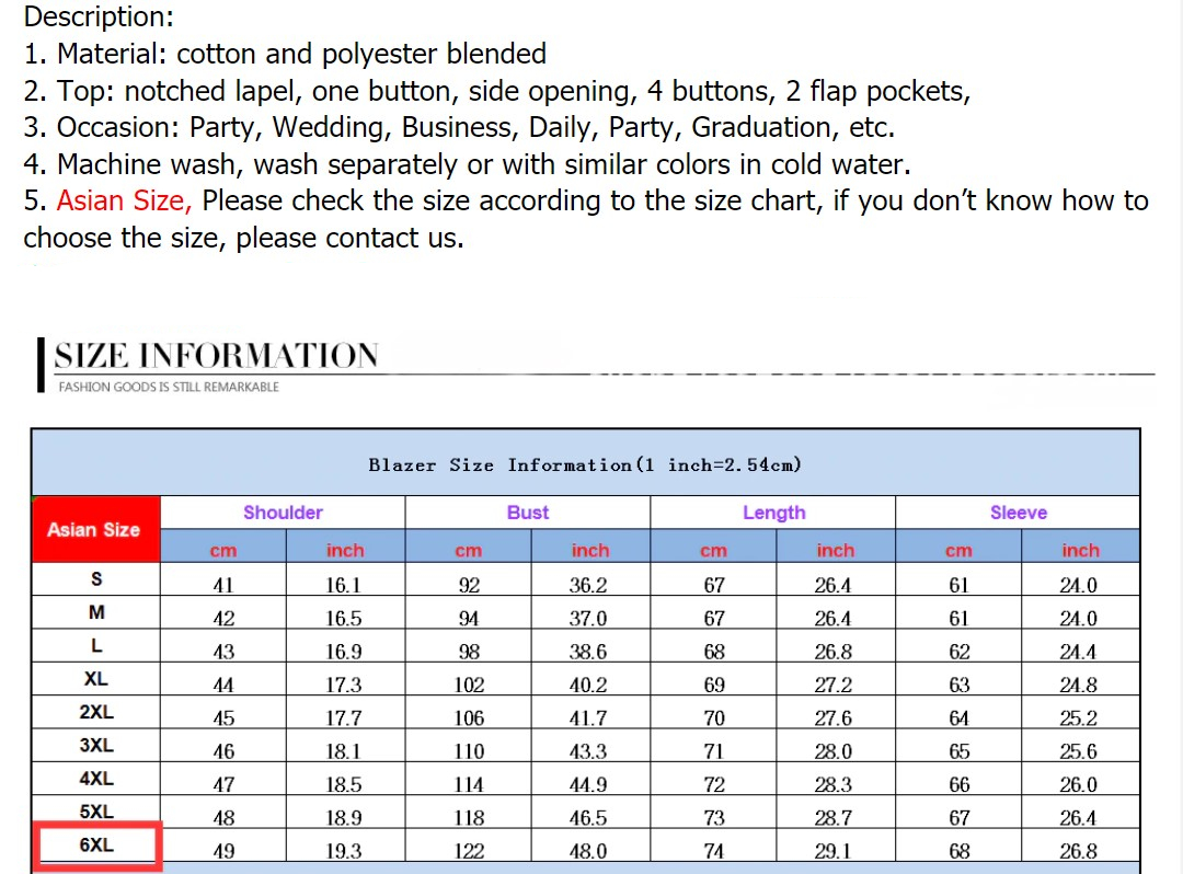 | Euro vs Asian Size | Asian Size is about 3 sizes smaller than US / EU e.g. if you are American size M => should then choose Asian size XXL or vice versa., When measuring by hands, differences within 3 cm might happen (1 inch = 2.54 cm). |
