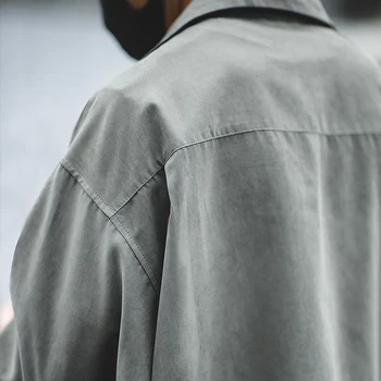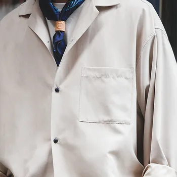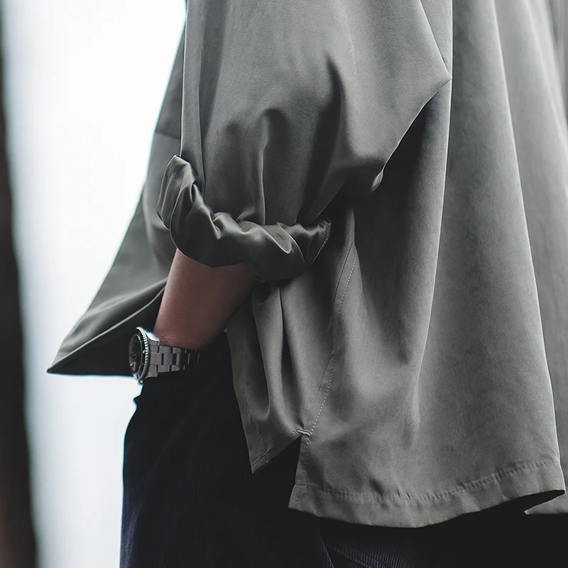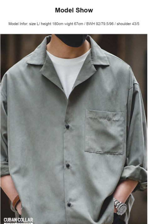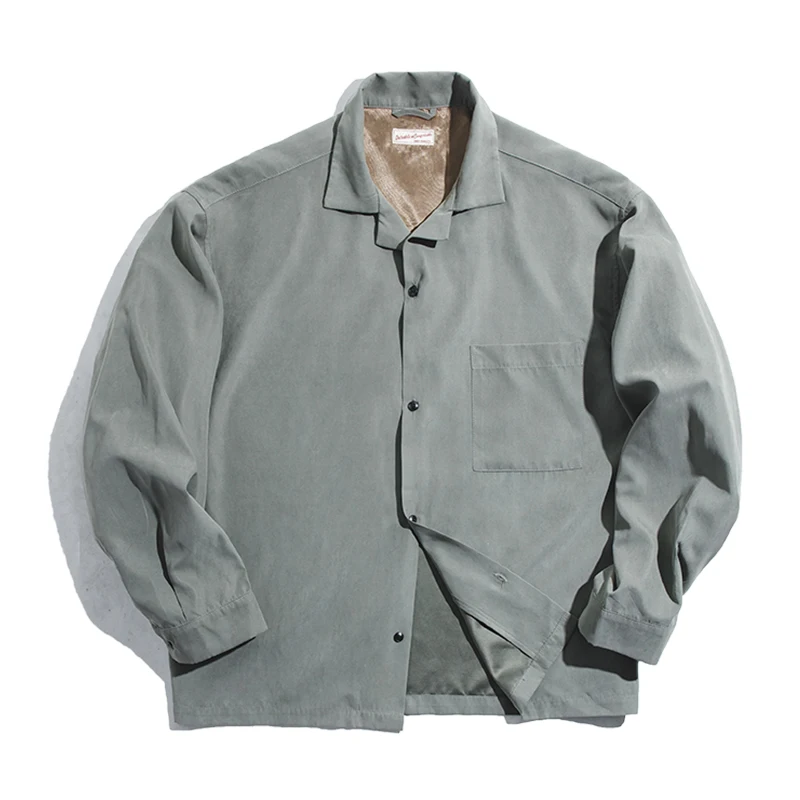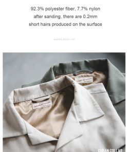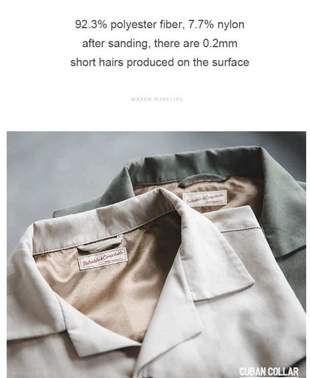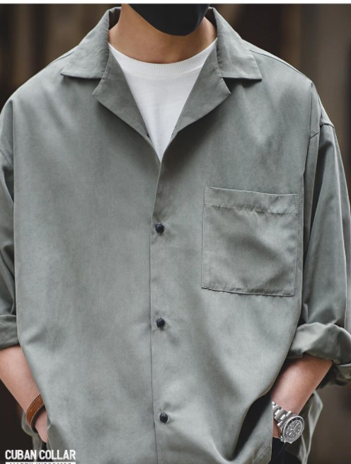 with L/Sleeves, drop shoulder, Chest pocket, Cuban collar and in Polyester and Nylon blend with peach touch