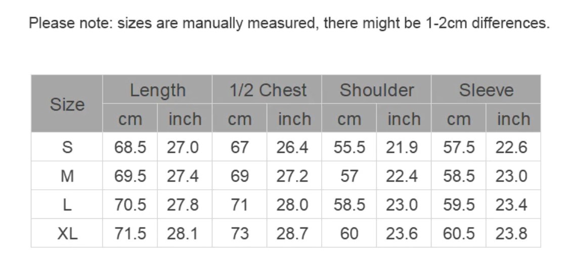 | Euro vs Asian Size | Asian Size is about 3 sizes smaller than US / EU e.g. if you are American size M => should then choose Asian size XXL or vice versa., When measuring by hands, differences within 3 cm might happen (1 inch = 2.54 cm). |