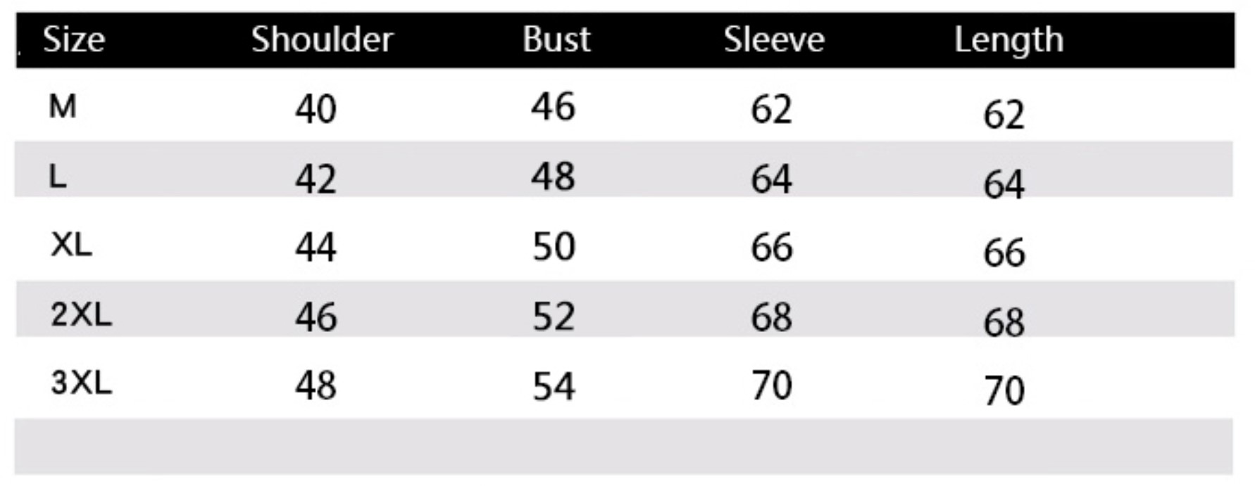 | Euro vs Asian Size | Asian Size is about 3 sizes smaller than US / EU e.g. if you are American size M => should then choose Asian size XXL or vice versa., When measuring by hands, differences within 3 cm might happen (1 inch = 2.54 cm). |