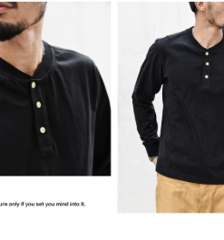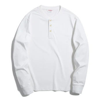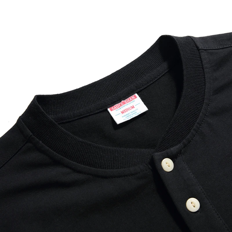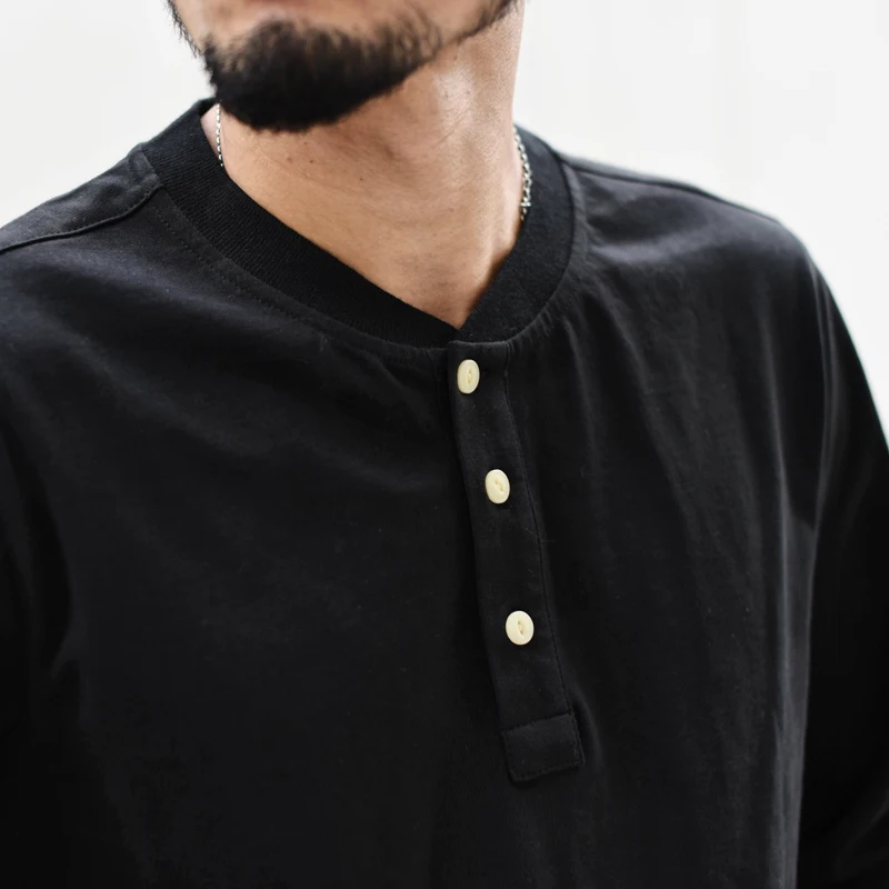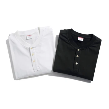 Retro half-buttons front T-shirt with Henry collar