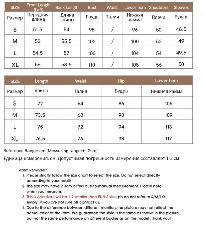 | Euro vs Asian Size | Asian Size is about 3 sizes smaller than US / EU e.g. if you are American size M => should then choose Asian size XXL or vice versa., When measuring by hands, differences within 3 cm might happen (1 inch = 2.54 cm). |