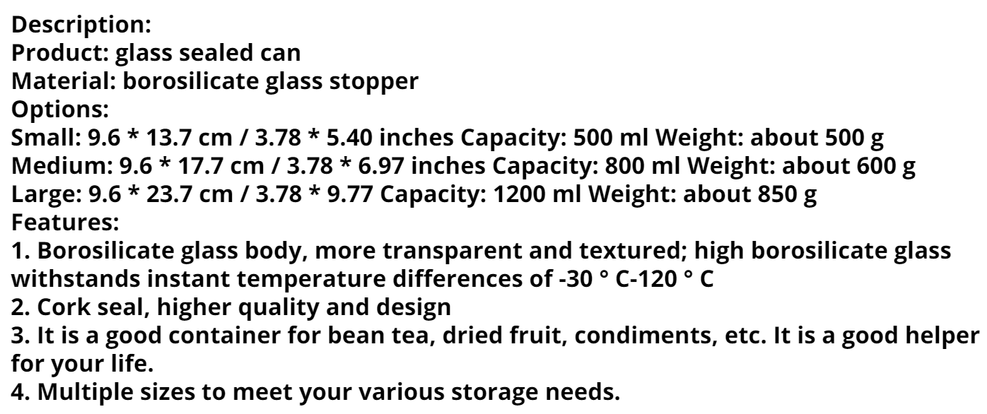 - usefulness : Containers for bean tea; dried fruits; seasonings; sweets; etc