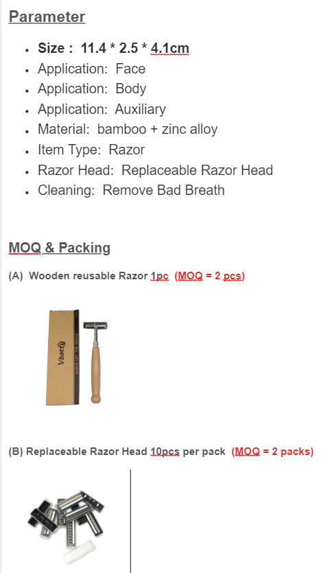 Wooden Non-Disposable Razor, Stainless Steel Reusable Razor Head (MOQ = 2pcs or 2packs)