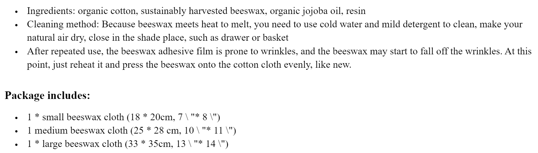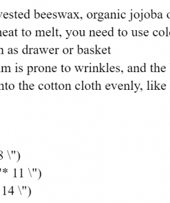 -Made in cotton, sustainably harvested beeswax and organic jojoba oil,