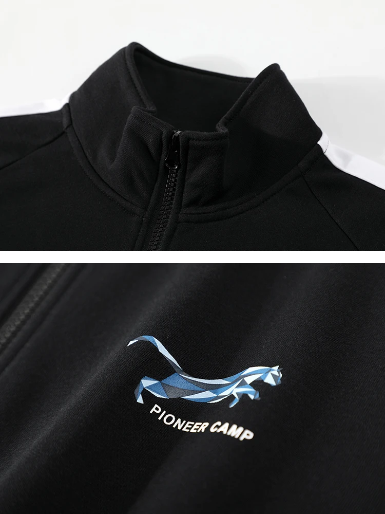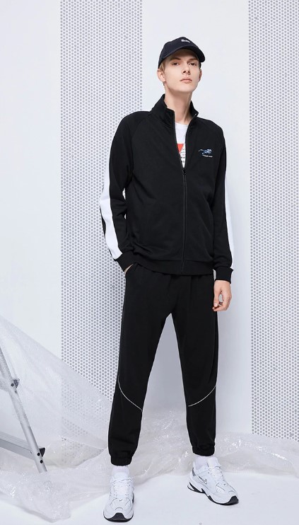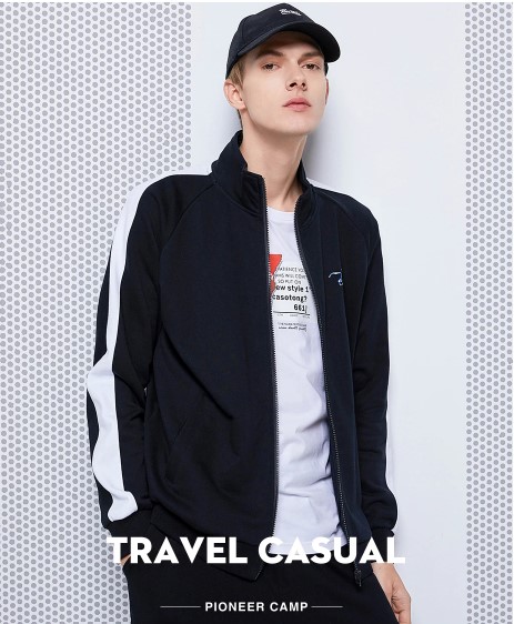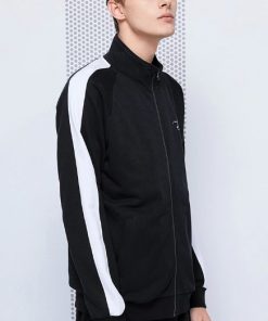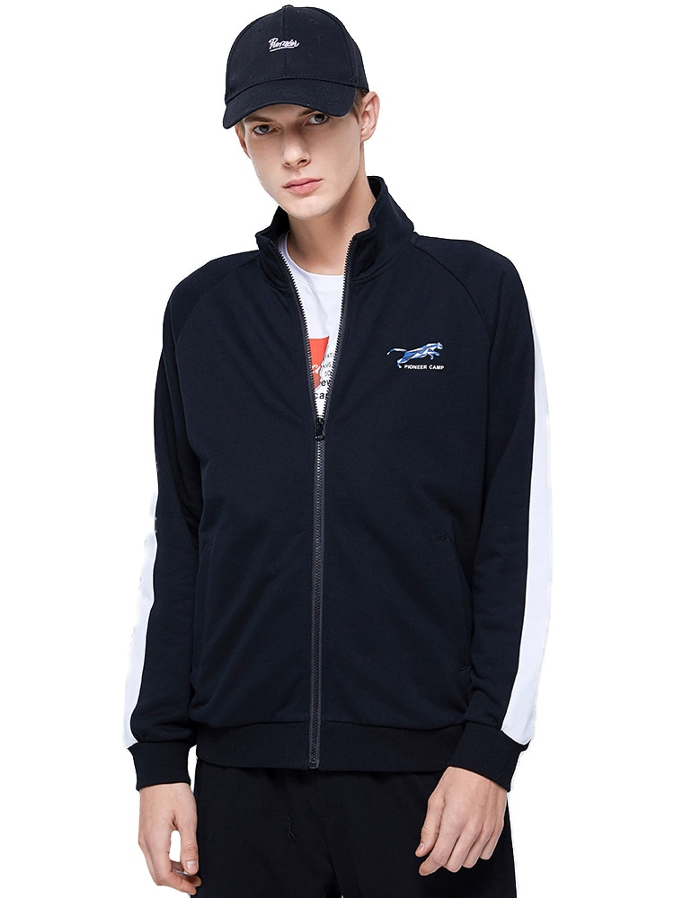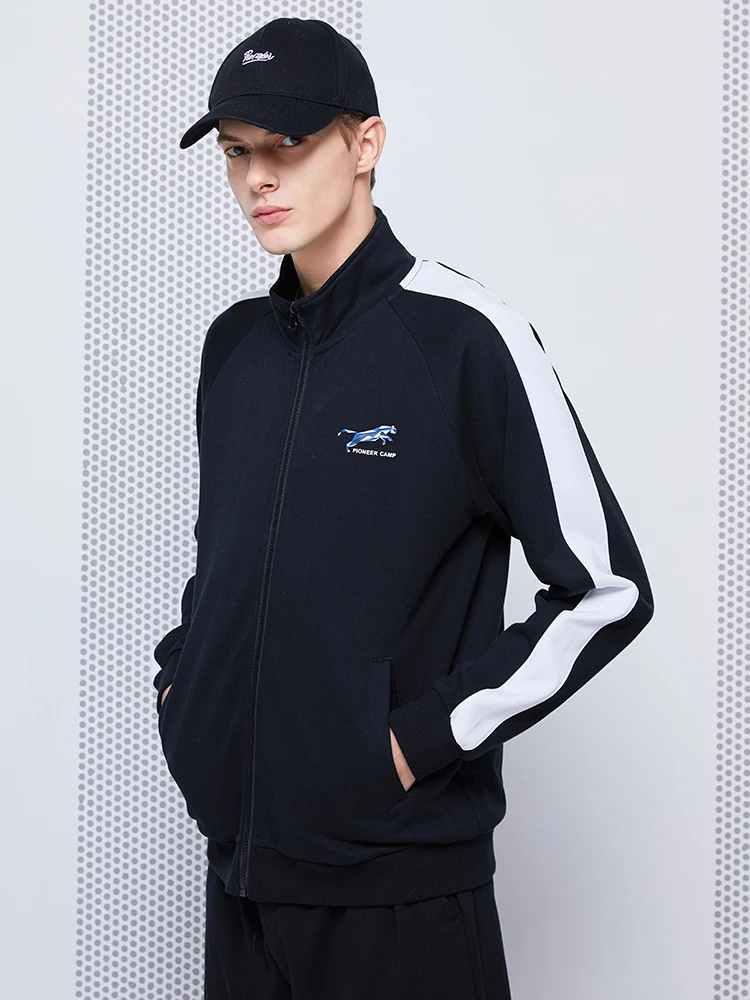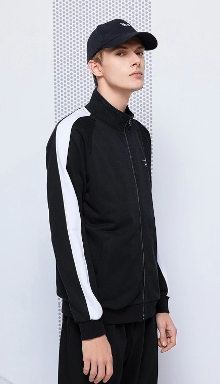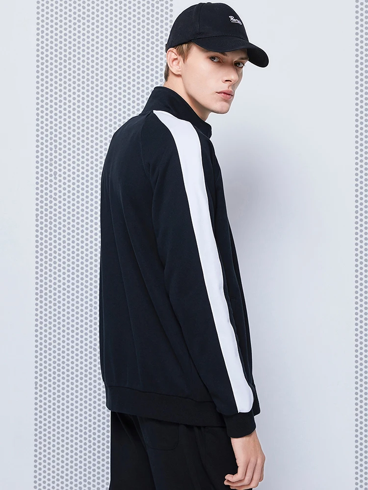 – mandarin Collar, ribbed cuffs, stripes on side sleeves