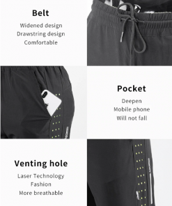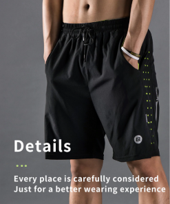 Polyester spandex blended with excellent Moisture absorption, Quick-drying, Built-in inner brief, Breathable & Ventilation design and Reflective patch-works