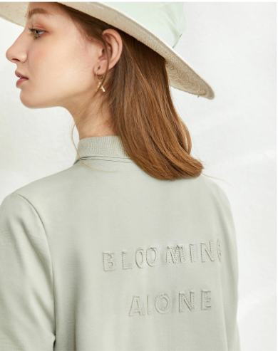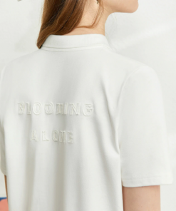Size & Size Advice straight cut, turn-down collar, Lettering EMB and in cotton knit
