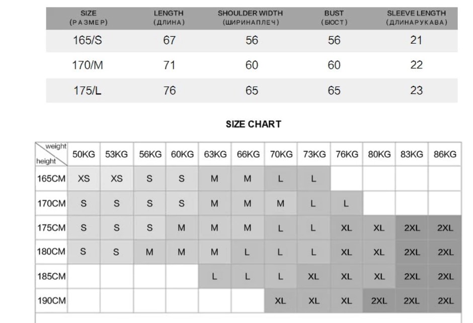 | Euro vs Asian Size | Asian Size is about 3 sizes smaller than US / EU e.g. if you are American size M => should then choose Asian size XXL or vice versa., When measuring by hands, differences within 3 cm might happen (1 inch = 2.54 cm). |