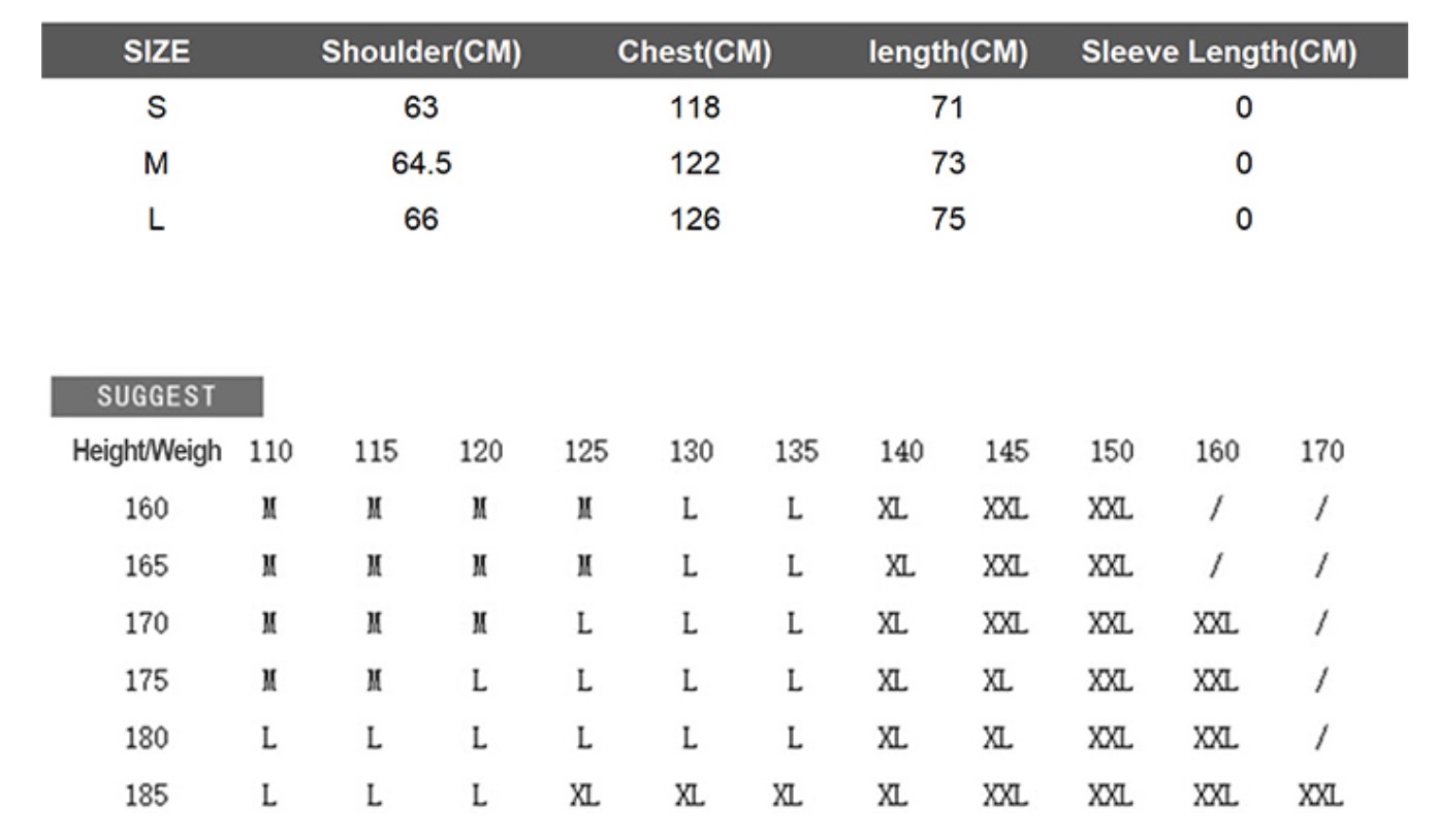 | Euro vs Asian Size | Asian Size is about 3 sizes smaller than US / EU e.g. if you are American size M => should then choose Asian size XXL or vice versa., When measuring by hands, differences within 3 cm might happen (1 inch = 2.54 cm). |