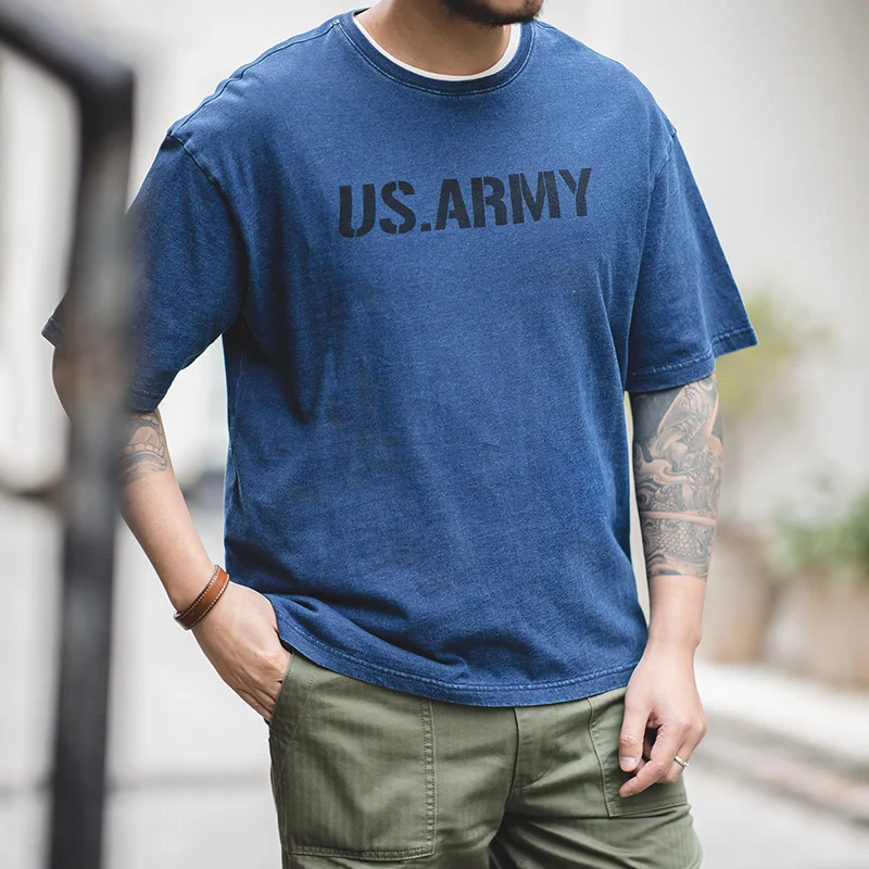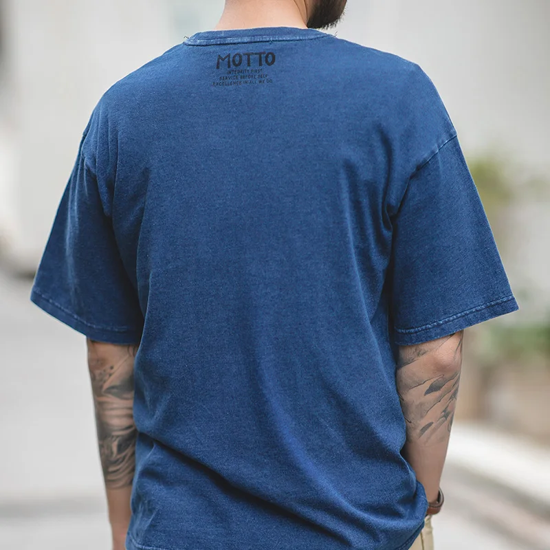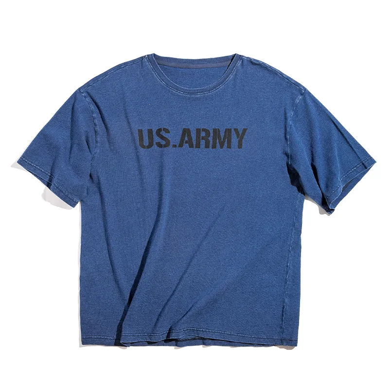 Crew Neck, Letters prints, Retro, S/S Short Sleeves and in garment washed Cotton