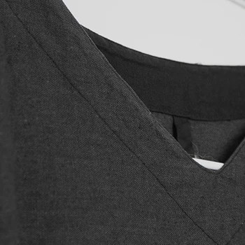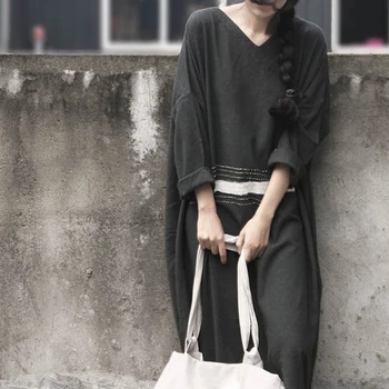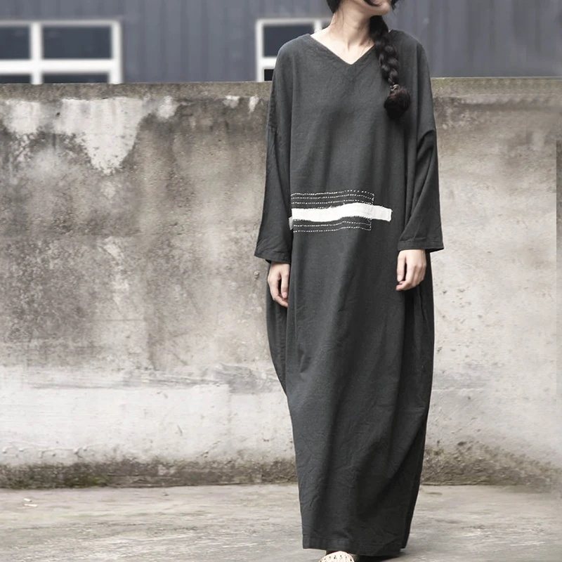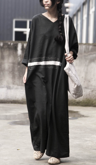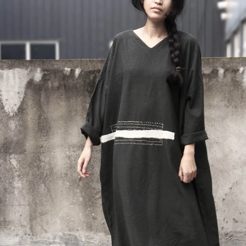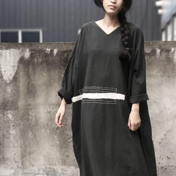 Size Casual Vintage with V-neck, Loose-fit, Embroidery and in Cotton Linen