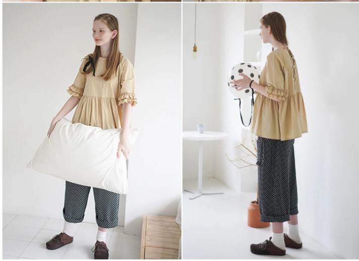Size & Advice with Butter-fly sleeves, Gathers at Waist & Sleeves, Short-Sleeves and in Cotton.,